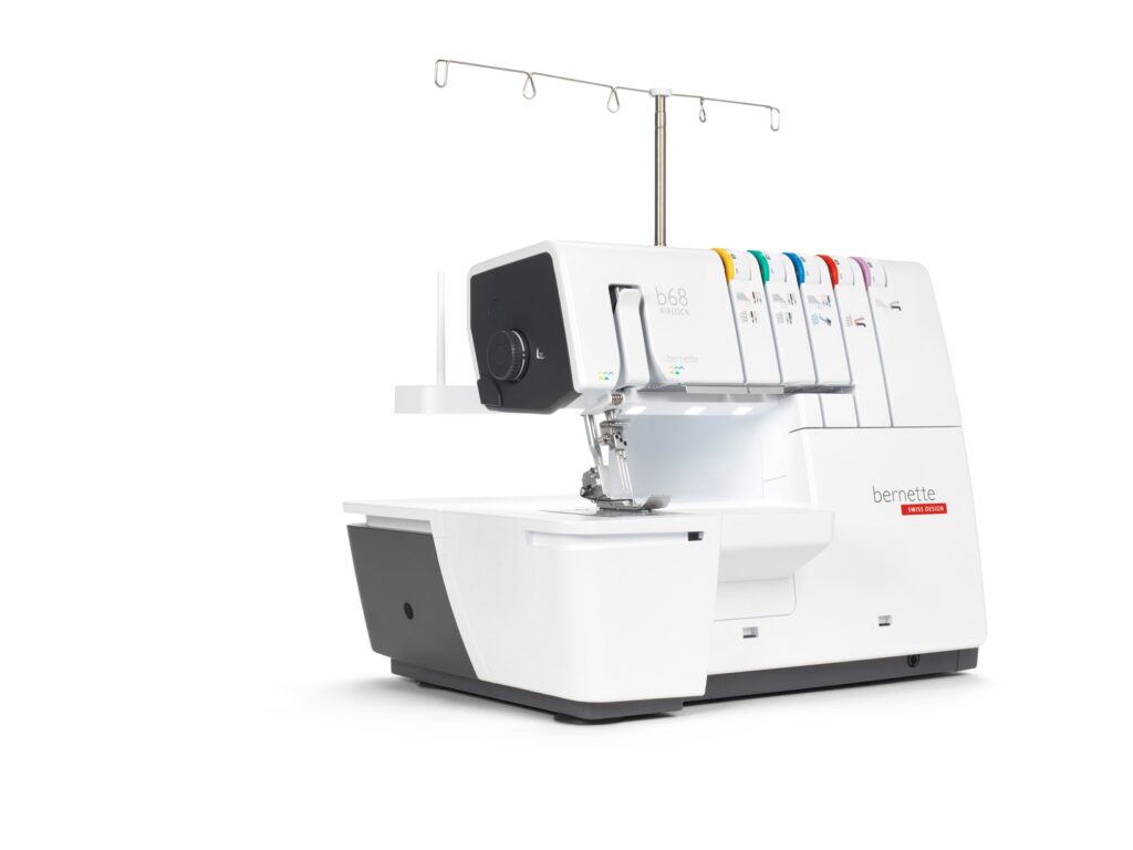 La bernette 68 est une machine combinée avec des points de surjet, des points enveloppants, des points de chaînette et des points combinés. Ses nombreux atouts incluent un enfileur à air pour faciliter l’enfilage des fils du boucleur, un espace de 130 mm à droite de l’aiguille pour la couture confortable de grands ouvrages (en particulier pour la couture au point enveloppant), un bras libre intégré pour la piqûre de manchettes, un éclairage lumineux de la zone de couture avec 5 LEDs et un levier de genou pour abaisser et relever temporairement le pied-de-biche. Avec 31 points différents, tous vos besoins seront satisfaits.