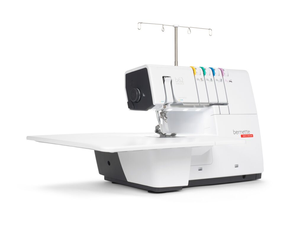 La bernette 62 AIRLOCK est la machine à point enveloppant de la série b60. L’enfileur à air automatique facilite l’enfilage du fil du boucleur. La machine dispose de 4 points enveloppants et de 3 points de chaînette et peut être utilisée pour d’innombrables applications et pour coudre parfaitement différents types de tissus, particulièrement les tissus extensibles. Le pied-de-biche peut être abaissé et relevé temporairement avec le levier de genou, laissant les deux mains libres de guider le tissu. La table rallonge et l’insert pour point enveloppant coordonné augmentent la zone de couture et offrent suffisamment d’espace pour les grands ouvrages. Grâce aux 5 LEDs, la grande zone de travail est bien éclairée.